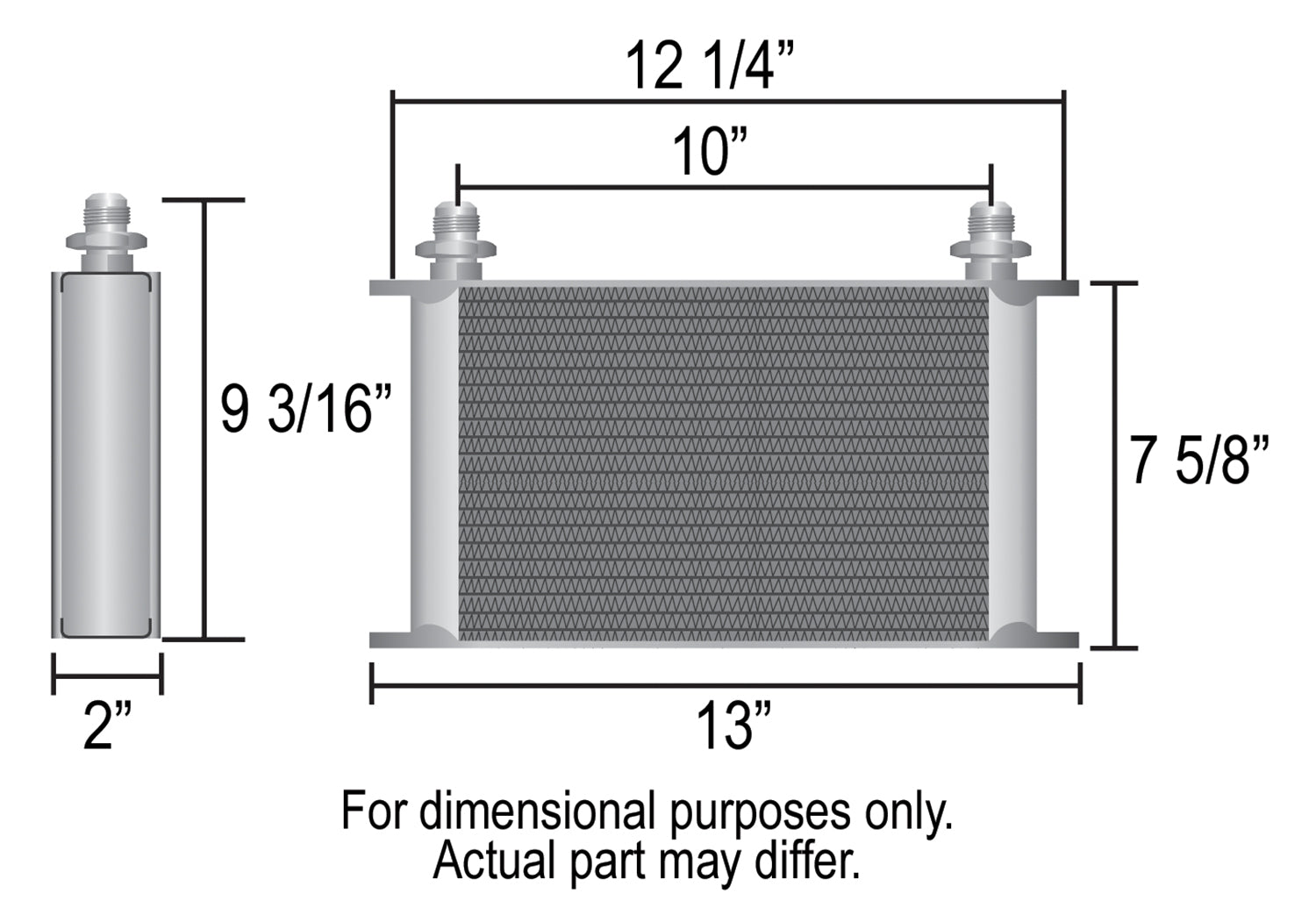 Our most efficient heat exchanger, the all aluminum 25 row Stacked Plate cooler features sturdy furnace brazed construction, full 2" deep turbulator-equipped plates and a black powder coat finish. With minimal pressure drop it can be used for engine, transmission or fuel cooling. Includes bright aluminum anodized finished -6AN male adapter fittings.
