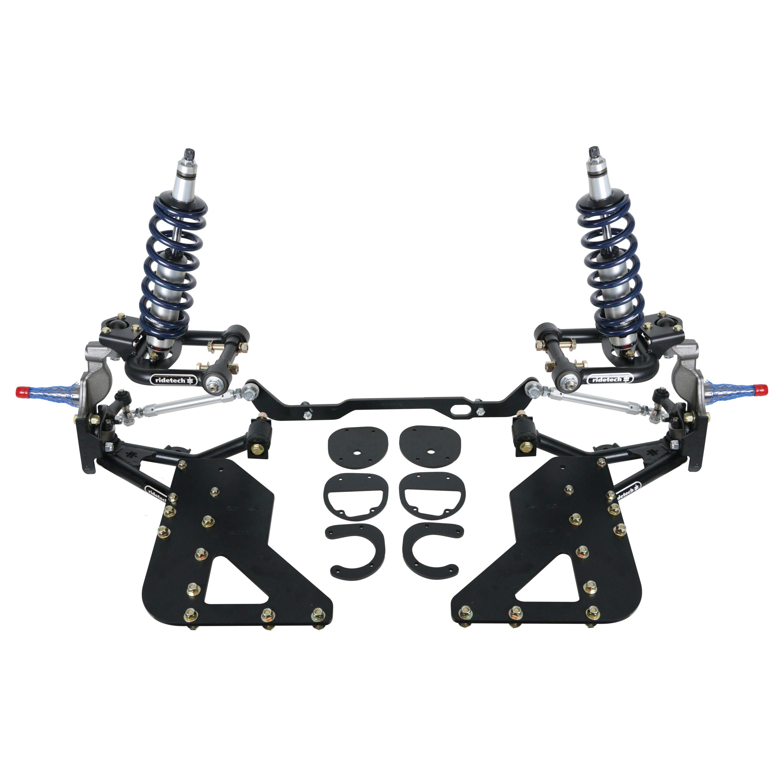 Front TQ Coil-Overs for 1962-1967 Chevy II Nova. For use with Ridetech upper arms. Includes a pair of triple adjustable shocks, springs, spring mounts and delrin spring washers.