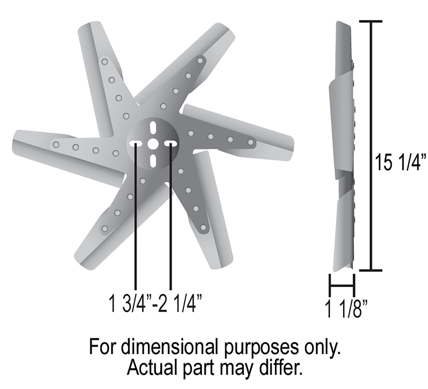 This 15" high performance, standard rotation flex fan is rated for engine speeds up to 8,000 rpm, and includes 6 polished stainless steel blades and a polished and chrome plated steel hub. An attractive and effective solution for cooling in limited space applications.