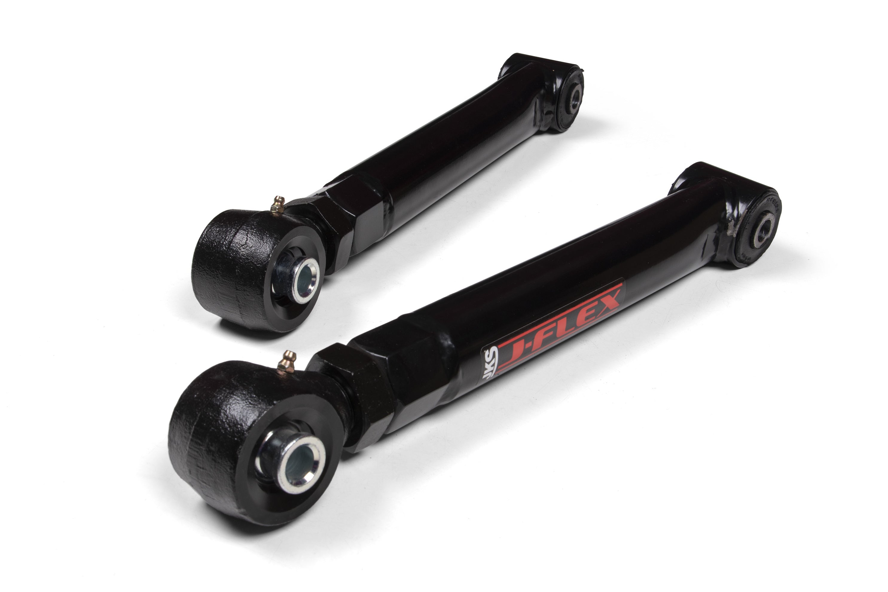 Build up your Jeep Gladiator JT the right way with these high strength J-Flex rear adjustable upper control arms from JKS. Built for superior strength and smooth operation on/offroad, these arms allow you to correctly position the rear axle and correct pinion angle on your stock or lifted Gladiator. J-Flex arms are built from heavy duty 2” OD x .250-wall DOM tubing for a massive improvement to factory arms that won't let you down out on the trail. At the axle mount, J-Flex arms feature premium OE style rubber bushings to absorb noise and reduce vibrations for a comfortable, quiet ride and maintenance-free operation. At the frame-side mount, J-Flex arms incorporate a unique hex-shaped threaded bung for easy adjustment of the forged flex end and 1-1/4”-12 threads jam nut Flex end design allows for 30-degrees of misalignment (15 in either direction) for impressive articulation and are greaseable to ensure long bushing life. When the time comes, JKS flex ends are rebuildable. As with all JKS control arms, these J-Flex lower control arms come finished in a durable gloss black powder coat finish and are backed by JKS’s limited lifetime warranty. Sold in pairs.